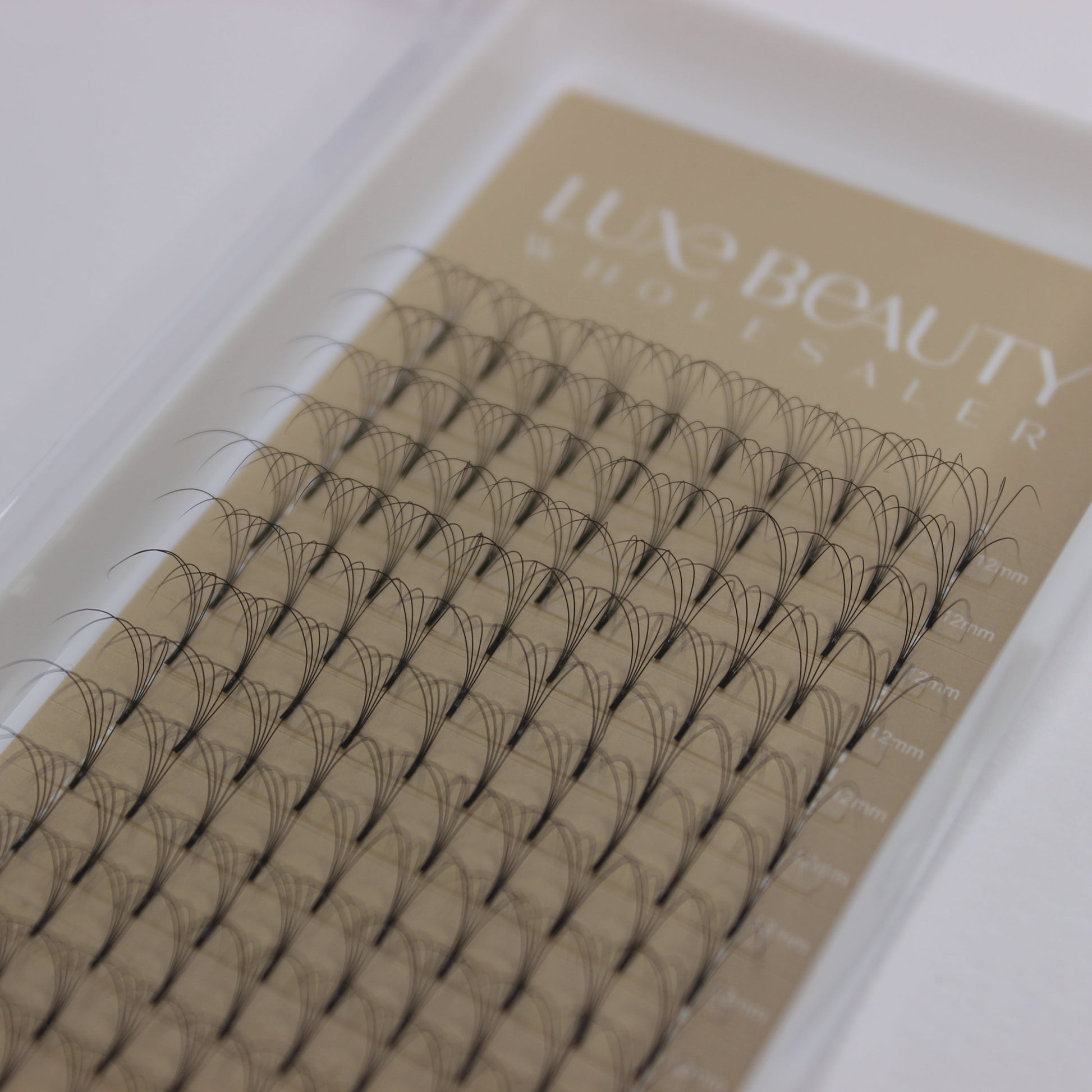 Our 5D Short Stem Pre-made Volume Fans combine the convenience of pre-made fans with the soft, fluffy appearance of handmade volume lashes.